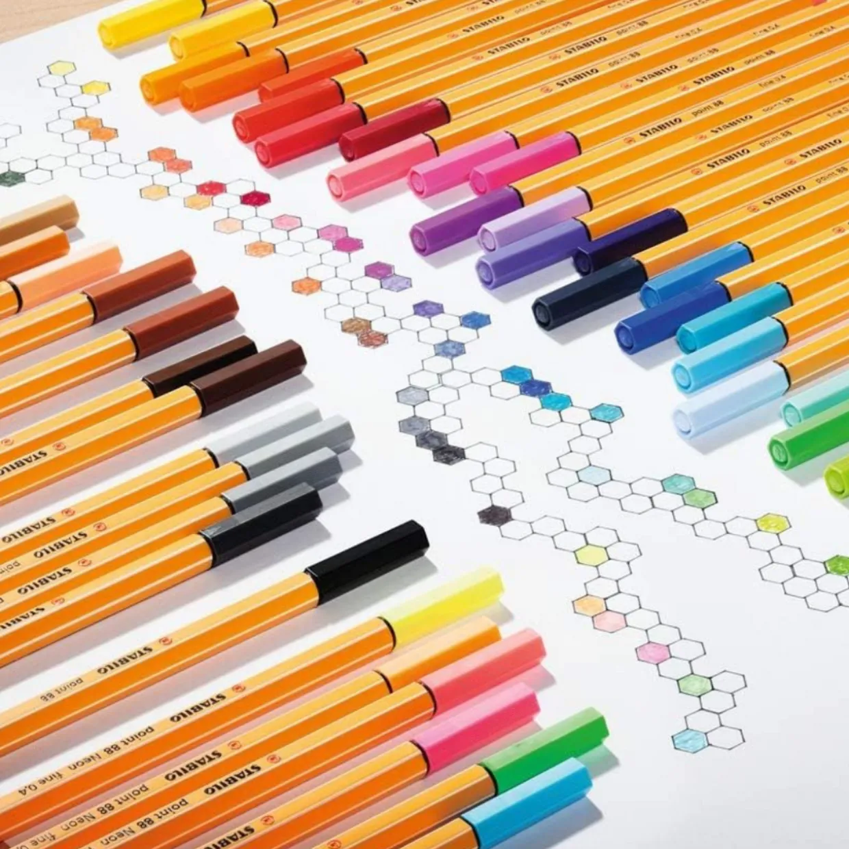 The iconic hexagonal barrel design with orange and white stripes offers a comfortable grip, making these fineliners not only stylish but also practical for extended use. Whether you are organising your notes, highlighting key information, or creating colourful artwork, the STABILO Point 88 Neon Fineliners are designed to meet your needs with exceptional quality.